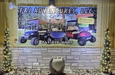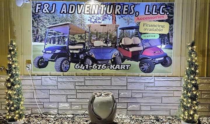 F&J Adventures, LLC Golf Carts is located in Oskaloosa, Iowa. We have serviced the entire State of Iowa, surrounding states, and even across the United States. We offer the best selection of gas carts in the industry and a range of accessories to customize your cart.